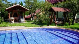 Mobilierul confectionat din lemn, inclusiv lenjeria sau perdelele cu motive traditionale, in tonuri calde, creeaza un ambient care confera destindere si relaxare. In completare vin frumusetea si salbaticia peisajului care inconjoara locatia noastra si care pot fi admirate din balconul camerei sau veranda.
